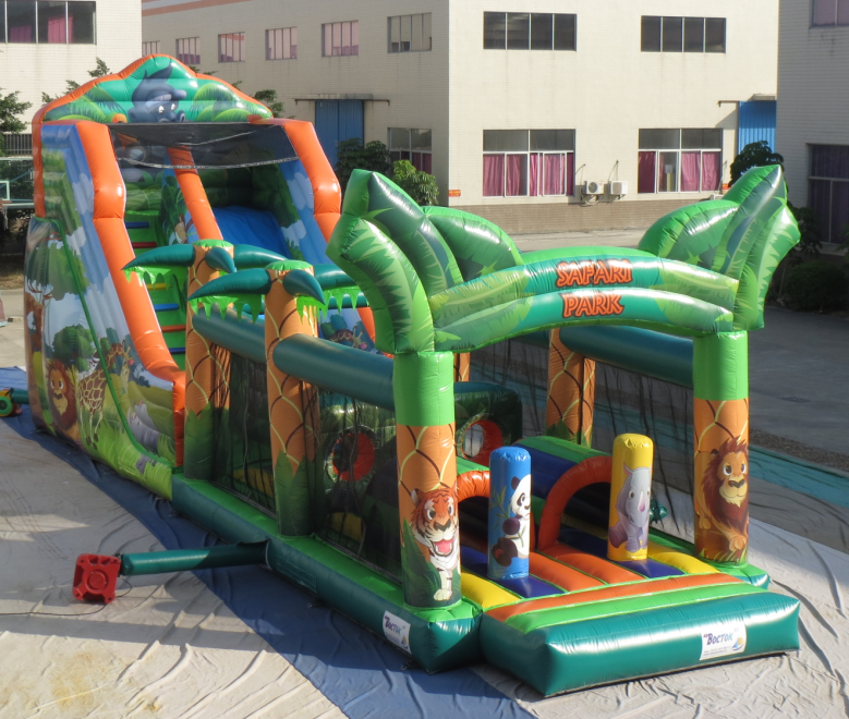 We recommend one stationed at the front, to control the line, and the other supervisor to be inside the inflatable at the bottom of the slide and stairs to ensure no patrons collide with each other and that only one person can go down the slide at any one time.